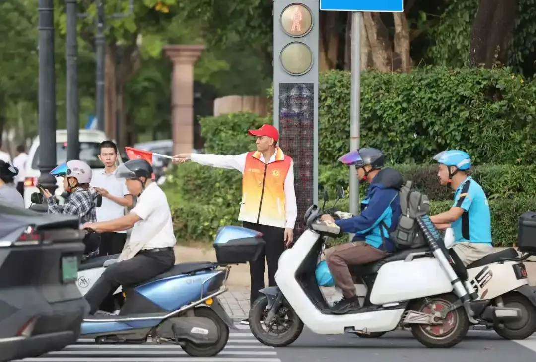 由全市社会工作部门招募的100名社会工作志愿者,于十五运会湛江赛区武术散打比赛首日全部就位,正式投入赛事交通保障工作,在市区各大交通枢纽、比赛场馆周边以及人流密集区域,以规范的动作与专注的精神,全力维护赛场周边交通秩序,确保出行高效顺畅。
