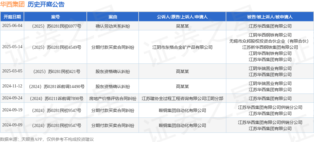 本站消息点石策略,根据天眼查APP显示,近日公布了一则江苏华西集团有限公司作为被告/被上诉人的开庭公告,详细内容如下: